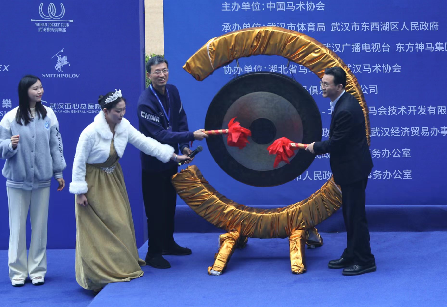 本次大赛开幕式于当日下午1点30分开始,中国马术协会秘书长钟国伟先生及武汉市体育局副局长颜璠女士致开幕式致辞,国家体育总局小球运动管理中心党委书记、主任贺凤翔宣布开赛。湖北省体育局局长水兵和武汉市人民政府副秘书长张明武共同敲响了开赛铜锣!