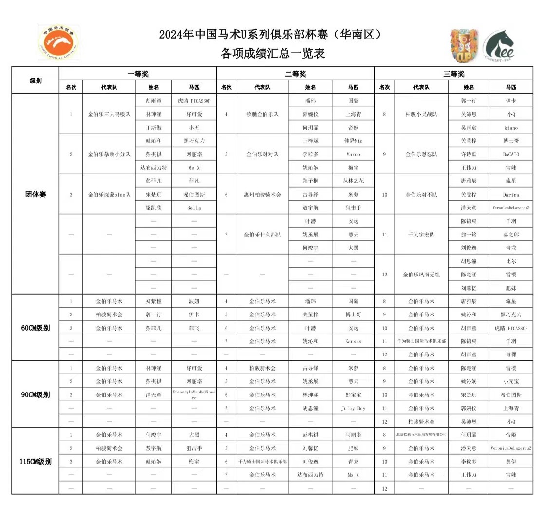 “展现骑士风采,共谱青春华章”2024年中国马术U系列俱乐部杯赛(华南区)圆满结束