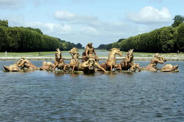 恭迎太阳神阿波罗归位! 阿波罗驾驶着战车,代表着太阳升起。这座铅塑喷泉组约重三十吨,包括十三尊雕像。上一次大修还是1923-1927年,近百年过去,整个管道和喷水景观早已偏离了最初的设计。历时一年多的管道疏通、雕塑群裂痕修补、铅制表层清理、镀金等一系列修复工程,这座典型的路易十四时期的凡尔赛喷泉焕然一新,重新出现在最著名的大喷泉(Grandes Eaux)中心。