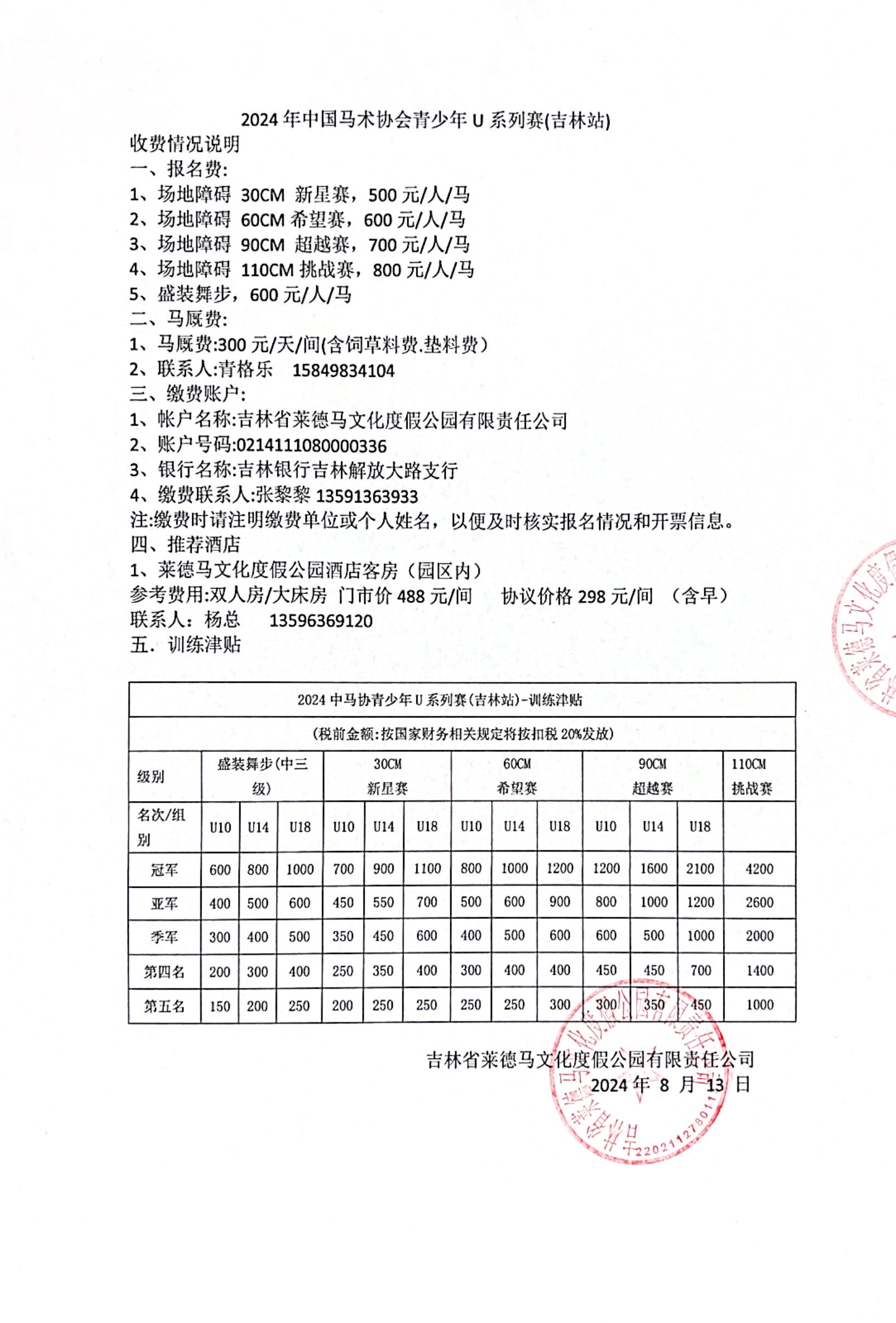 中马协关于举办2024年中国马术协会青少年U系列赛(吉林站)的通知