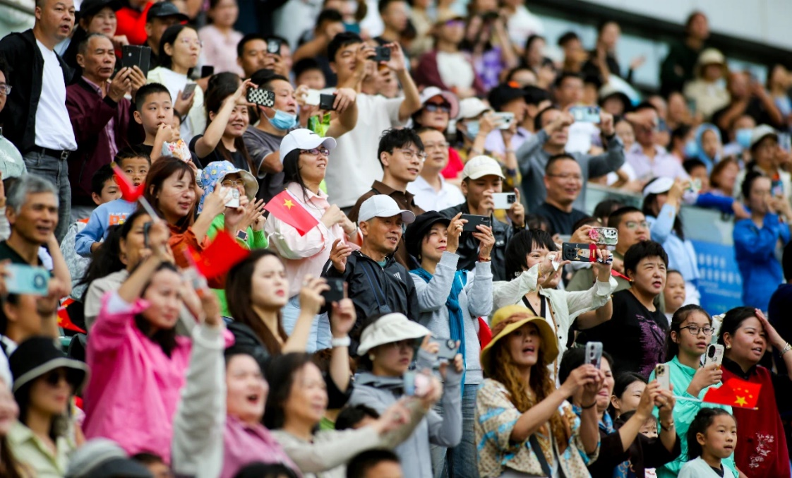 赛事当天的配套活动丰富了观众们的观看体验,“摇一摇”、“猜头马”让现场观众全情投入。在赛事前后,主办方推出了精彩的文艺表演,当《今天是你的生日,我的中国》的歌声在马城唱响,满满的家国情怀在这片红色的赛场荡漾流淌,现场几千观众与武汉音乐学院的歌手一起歌唱祖国。