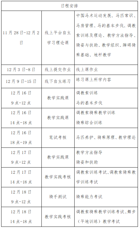 (三)线下辅导和实践考核:2024年12月16日-18日,在南京舞马者冠军骑士学院进行线下集中辅导与实践考核。