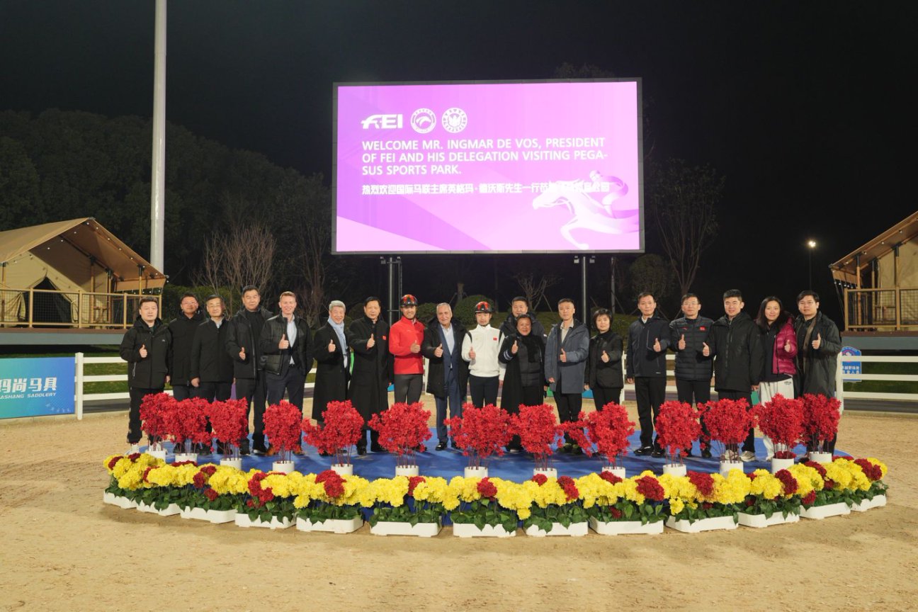 2025年1月13日,中国马术协会秘书长钟国伟,副秘书长兼商务部部长陈九庆,陪同国际马联主席、国际奥委会委员英格玛.德沃斯,国际马联副主席、国际马联第八区主席黄启芳,国际马联商务部负责人拉尔夫.斯特劳斯,国际马联第八区副主席、柬埔寨马术协会主席诺罗敦.南达黛维公主殿下,国际马联主席特别顾问、国际马联高级项目经理樊桦等一行,赴江苏海澜飞马体育公园参观调研。