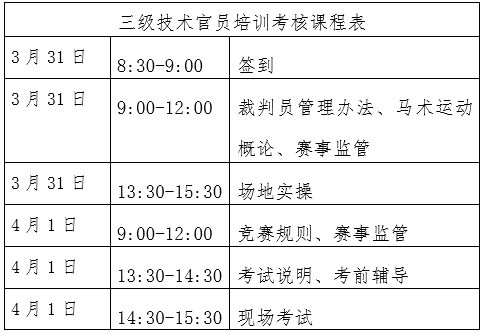 中国马术协会关于在天津举办场地障碍三级技术官员培训考核的通知