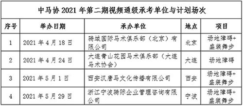 (五)在本期所有承考单位考核视频拍摄上报完成后,中国马术协会组织考官在京评审打分,通过考核的等级名单将在官网公示。
