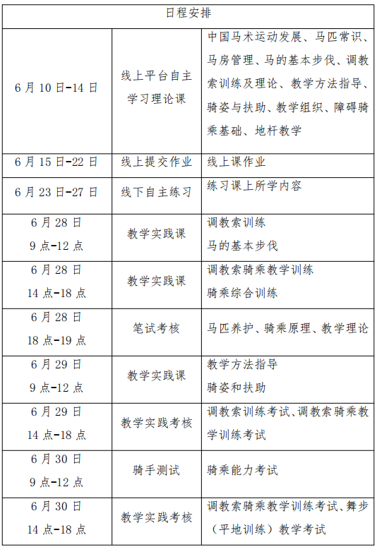 (三)线下辅导和实践:2026年6月28日-30日,在光明国际马术中心进行线下集中辅导与实践。