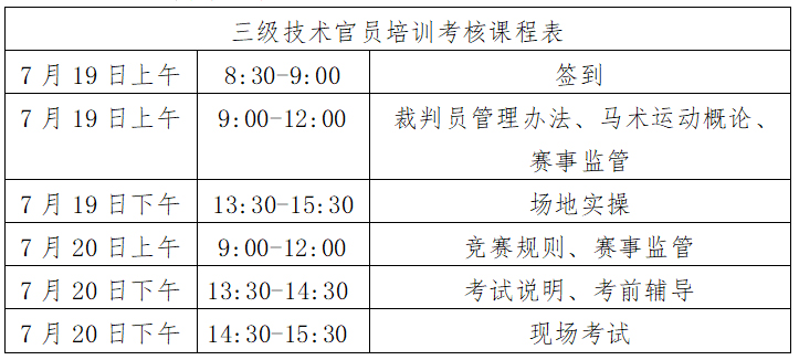 根据马术专业人才培养计划,我协会将于2021年7月19日-20日在厦门市思明区观音山梦幻海岸沙雕文化体育公园举办三级技术官员培训考核活动,合格者授予中国马术协会相应等级技术官员证。现就本次培训考核相关事宜通知如下: