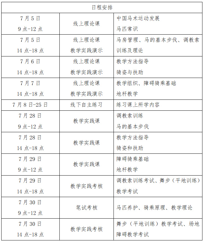 (三)线下辅导和实践考核:2021年7月28日-7月30日,在山东骏腾马术俱乐部进行线下集中辅导与实践考核。