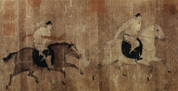 在中国古代传统体育项目中,有一种骑在马上以杖击球的运动项目叫做马球。这一运动形式除了马以外,主要器械为球和杖。