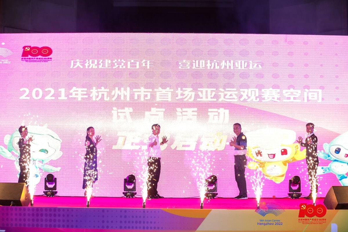 6月15日晚,在县城中心广场,2021年杭州市首场亚运观赛空间试点活动举行,这意味着我县率先完成了全市首个县级观赛空间的布置打造。