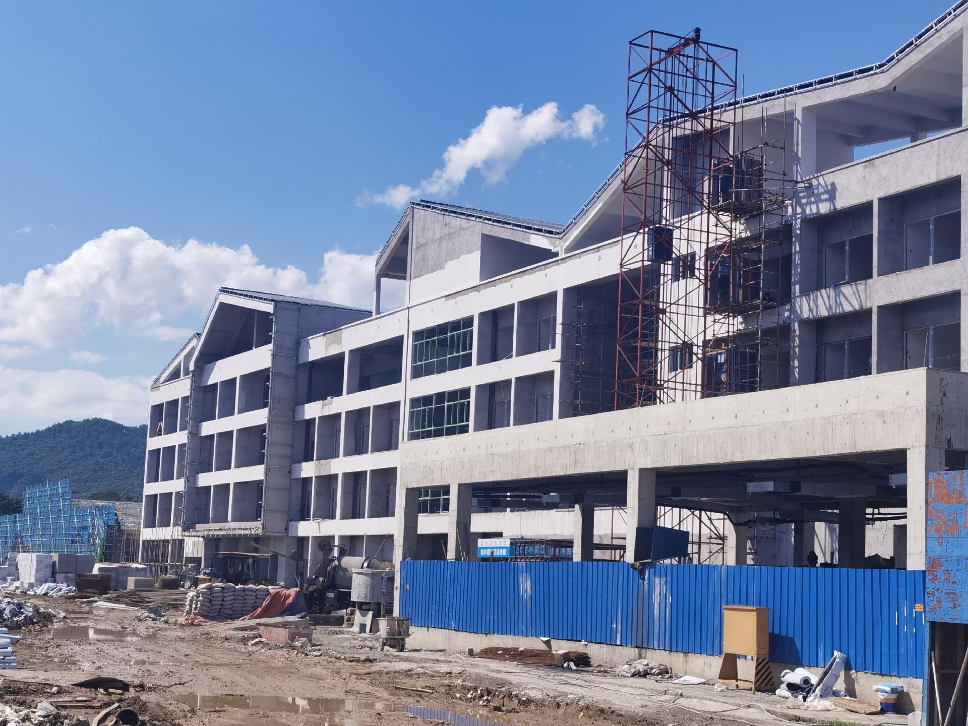 经过各方不懈努力,目前项目结构主体完成全面封顶,砌体结构已完成,粗装饰工程完成,钢结构及涂料工程完成,保温工程及屋面防水工程完成,幕墙工程施工完成98%,机电安装工程完成92%,弱电与智能化工程完成87%,精装修完成85%,电梯安装工程完成55%,地下管道预埋工作、室外场地道路基层处理与水管网预埋施工已完成,室外铺装完成80%,室外绿化与道路基层施工完成40%,体育专项工程完成40%。
