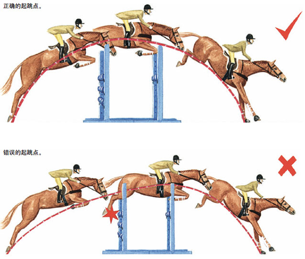 除非马匹正确地接近障碍,否则马匹不能够调整其步伐以正确地找到起跳点。只有马匹节奏、平衡和动力很好,它才能够在伸长和缩短步伐时仍然不打杆。双横木障碍的起跳点的范围比梯形障碍的起跳点要求更准确,这样就增加了跳障碍的难度。