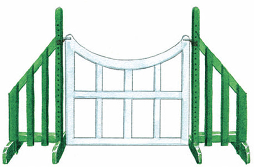 真正的窄障碍杆是白色的,底座是一双脚一样支撑的障碍架,在全程中它是很窄的障碍,这种障碍还可以做成砖墙、门状或木板条形式。