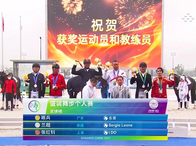 北京时间9月18日上午8:00,第十四届全运会马术项目盛装舞步个人赛决赛在陕西省西咸新区秦汉新城马术比赛场地正式开始。最终,在12名骑手完成精彩的演绎后,广东队顾兵搭档马匹“东哥”摘得本届全运会盛装舞步个人赛桂冠,新疆队兰超策骑马匹“Sergio Leone”夺得亚军,上海队张红钊和马匹“I Do”将个人赛铜牌收入囊中。