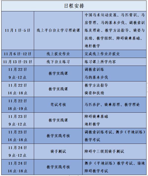 (三)线下辅导和实践考核:2021年11月22日-24日,在无锡阳山梦想马术学府进行线下集中辅导与实践考核。